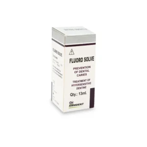 Ammdent Flurosolve for Hypersensitivity is a specialized dental solution meticulously crafted to tackle dental hypersensitivity with precision and efficacy. Harnessing the potent properties of fluorides, Flurosolve operates through a dual-action mechanism to alleviate discomfort and fortify enamel resilience against chemical assaults. Firstly, it inhibits microbial growth, notably reducing the accumulation of flora on dental surfaces, with a particular focus on combating acid-producing “Lacto-bacilli.” This inhibitory effect curtails their detrimental impact on dental health. Secondly, Flurosolve facilitates a transformative process within the crystalline structure of enamel, enhancing its resistance to chemical attacks and bolstering durability against hypersensitivity triggers. In practice, Flurosolve offers a comprehensive approach to dental care. In the prevention of dental caries, it requires meticulous tartar removal, isolation of teeth with cotton wool rolls, and precise application over several minutes using saturated cotton wool strips. For dental hypersensitivity, the affected tooth is shielded from saliva, and Flurosolve is applied directly to the sensitive area, providing relief after rinsing. Packaged conveniently in a 13ml bottle, Ammdent Flurosolve for Hypersensitivity ensures ease of dispensing and application, offering patients enduring oral health and comfort through targeted care.